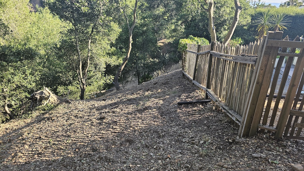When we found our home in the Oakland Hills in 2021, we were drawn to its natural setting. The 0.6-acre lot sits beneath six towering redwoods, with seven live oaks, three buckeyes, four cypresses, a cedar, and an abundance of privets and other vegetation. It felt like our own private woodland. What we hadn’t fully grasped was the extent of responsibility that came with it. Years of deferred maintenance had created a dense, overgrown landscape that was frankly overwhelming. We weren’t sure where to begin or whether our budget would be sufficient for the scope of work needed.