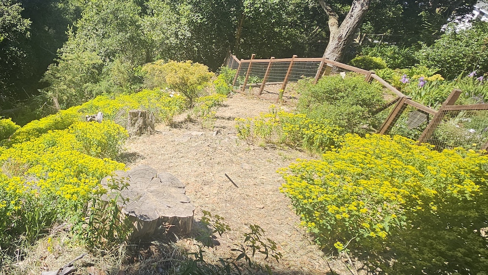 What’s especially gratifying is that some of the wood from the project is being donated to the Wildcat Canyon Community School in El Sobrante for their projects. We’re also having planks and 6×6 railroad ties milled from a substantial portion of that cypress trunk to use in our garden – it’s satisfying to give that tree a productive second life. We can now access areas of our property that had been inaccessible for years. We’ve already begun rediscovering native plants that were completely hidden beneath the overgrowth. It’s like getting reacquainted with our own land.